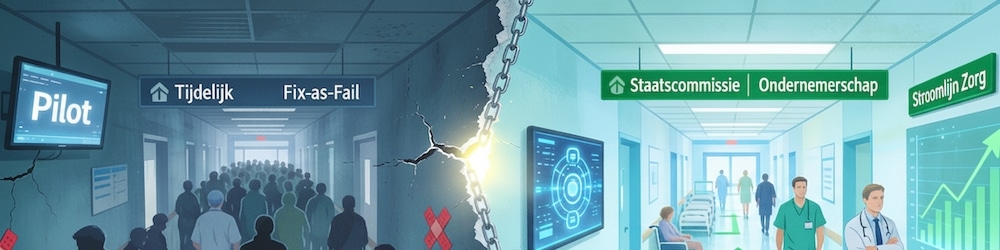 Met 100.000 mensen op de wachtlijst in de GGZ en een personeelsuitstroom van 21% is het duidelijk: de Nederlandse zorg staat onder hoogspanning. We proberen gaten te dichten met tijdelijke oplossingen, maar ondertussen houdt het systeem zijn eigen achterstand in stand. Waarom stranden briljante innovaties bijna altijd na de pilotfase? En wat is er nodig om écht meters te maken?